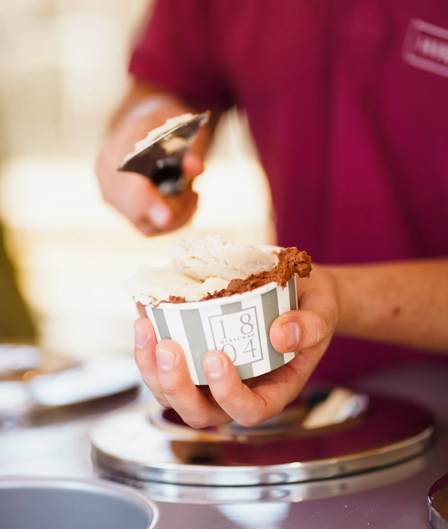 Besonders beliebt: unsere Steckerlfisch- und Eis-Hütte mit 6 leckeren Bio-Eissorten. Für den kleinen Hunger zwischendurch gibt es zudem Kaffee und Kuchen.